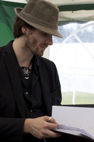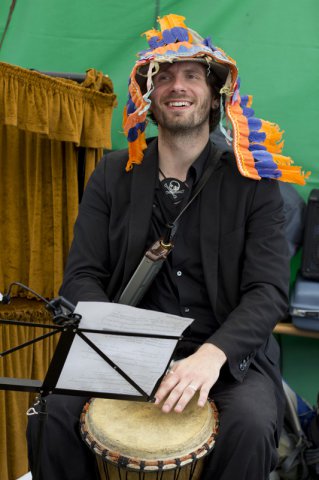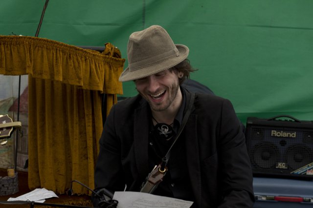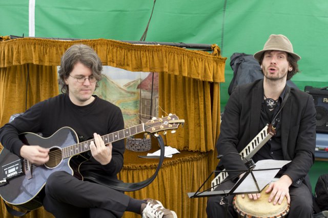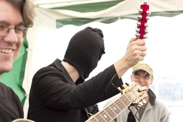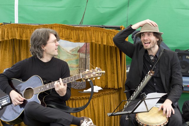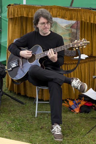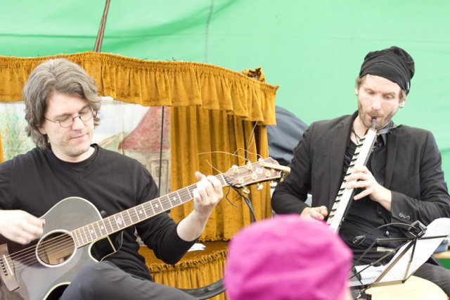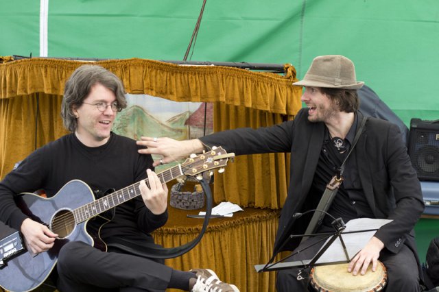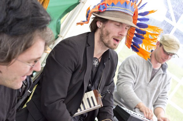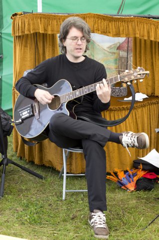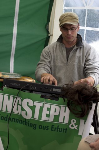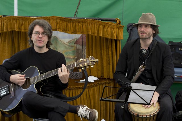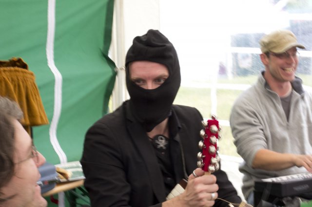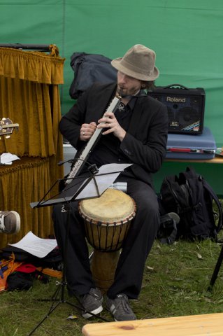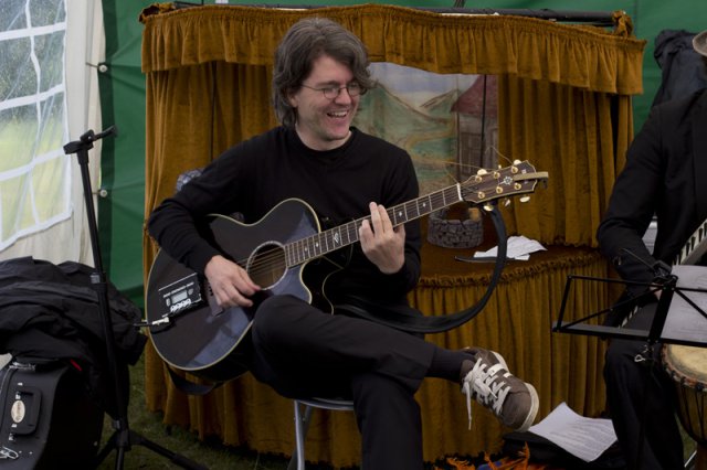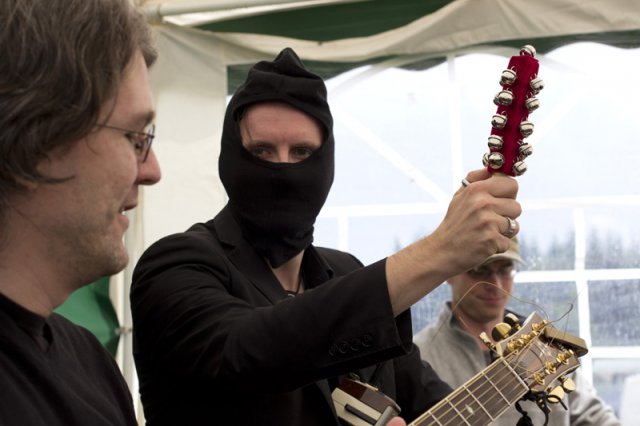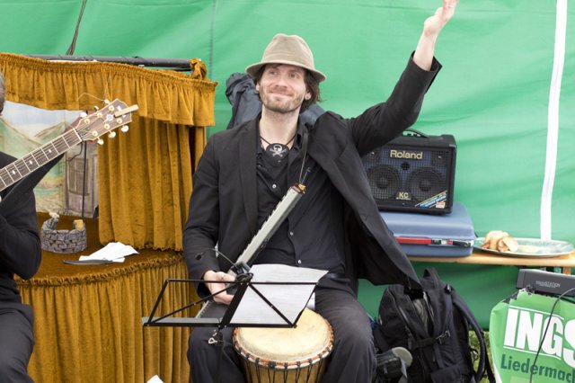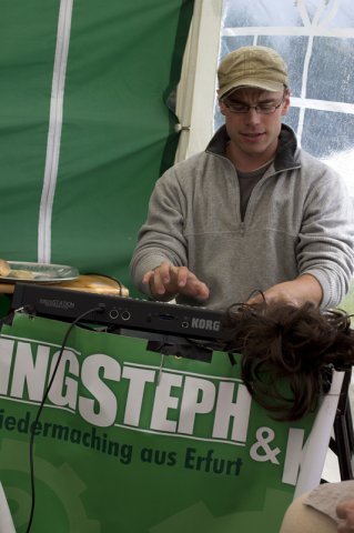 Alte Schulfreunde von Stephan waren im Orgateam und haben trotz des Weltuntergangswetters ein Riesenfest auf die Beine gestellt. Es war stürmisch, nebelig und vor allem nass - Unsere Autos wühlten sich schmale Bergpässe nach oben und erbebten unter den Stockschlägen wütender Wanderer, die eine Durchfahrtgenehmigung nicht interessiert. Unsere Instrumente haben wir hunderte Meter durch den Regen geschleppt aber wir ließen uns es trotzdem nicht nehmen, eine Stunde im Kinderzelt Programm zu machen. Wir hatten zwar nur 4 Kinder im Publikum (der Rest waren aber gutgelaunte Erwachsene) und das Zelt wurde zwischenzeitlich fast weggeweht; denn plötzlich hob eine Bank hinter uns ab und der Verstärker flog nach vorn, überschlug sich und stand plötzlich perfekt ausgerichtet zwischen Stephan und Konrad - ABER: es war ein riesen Spaß und wir kommen gerne wieder, allein schon um unser neues "Pupslied" noch einmal zu performen... Hier gibt es noch ein paar Fotos: